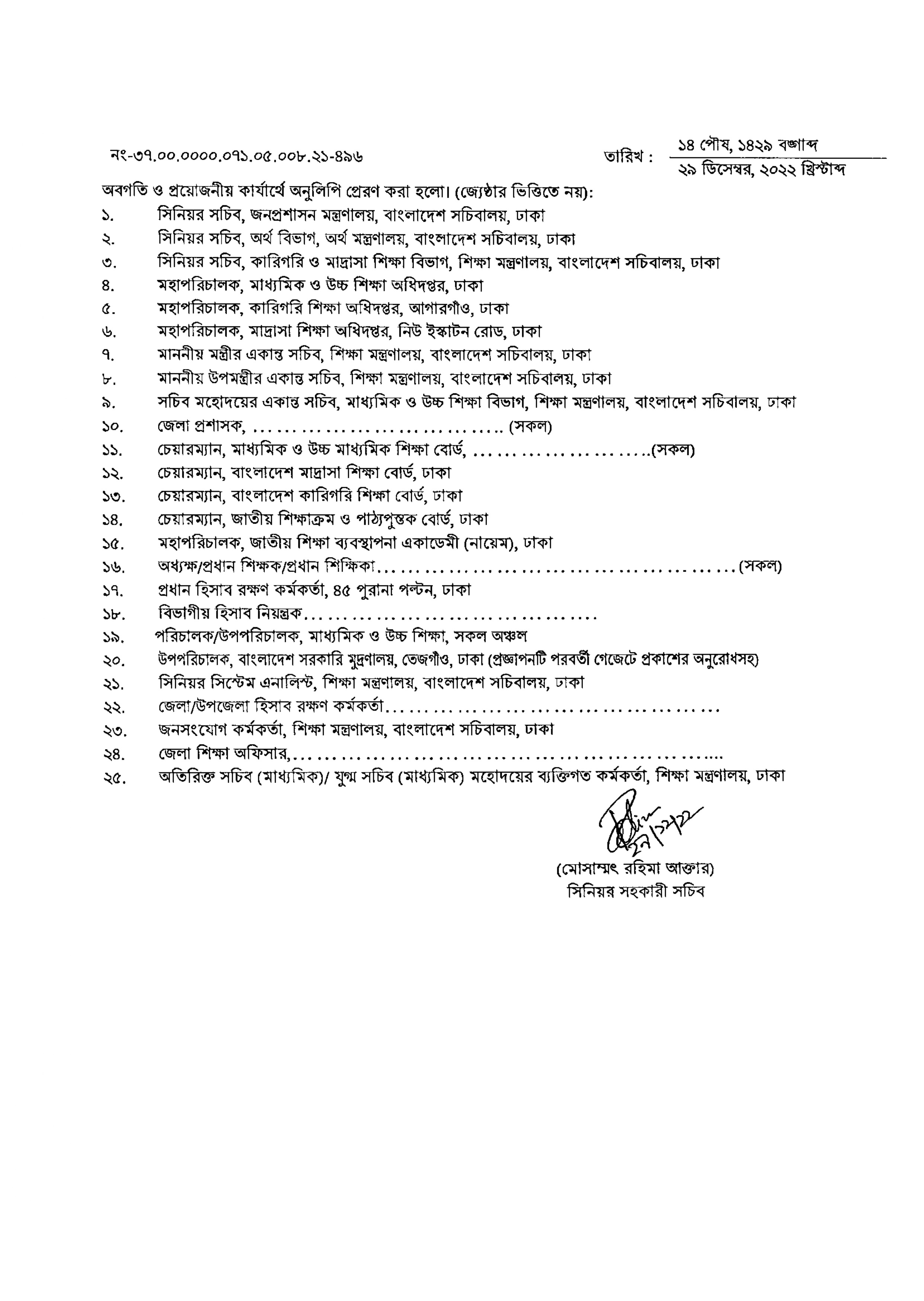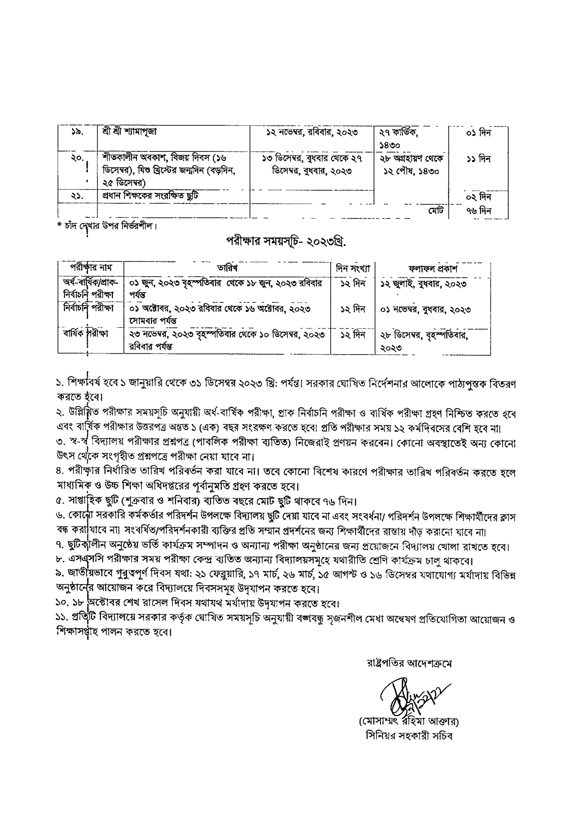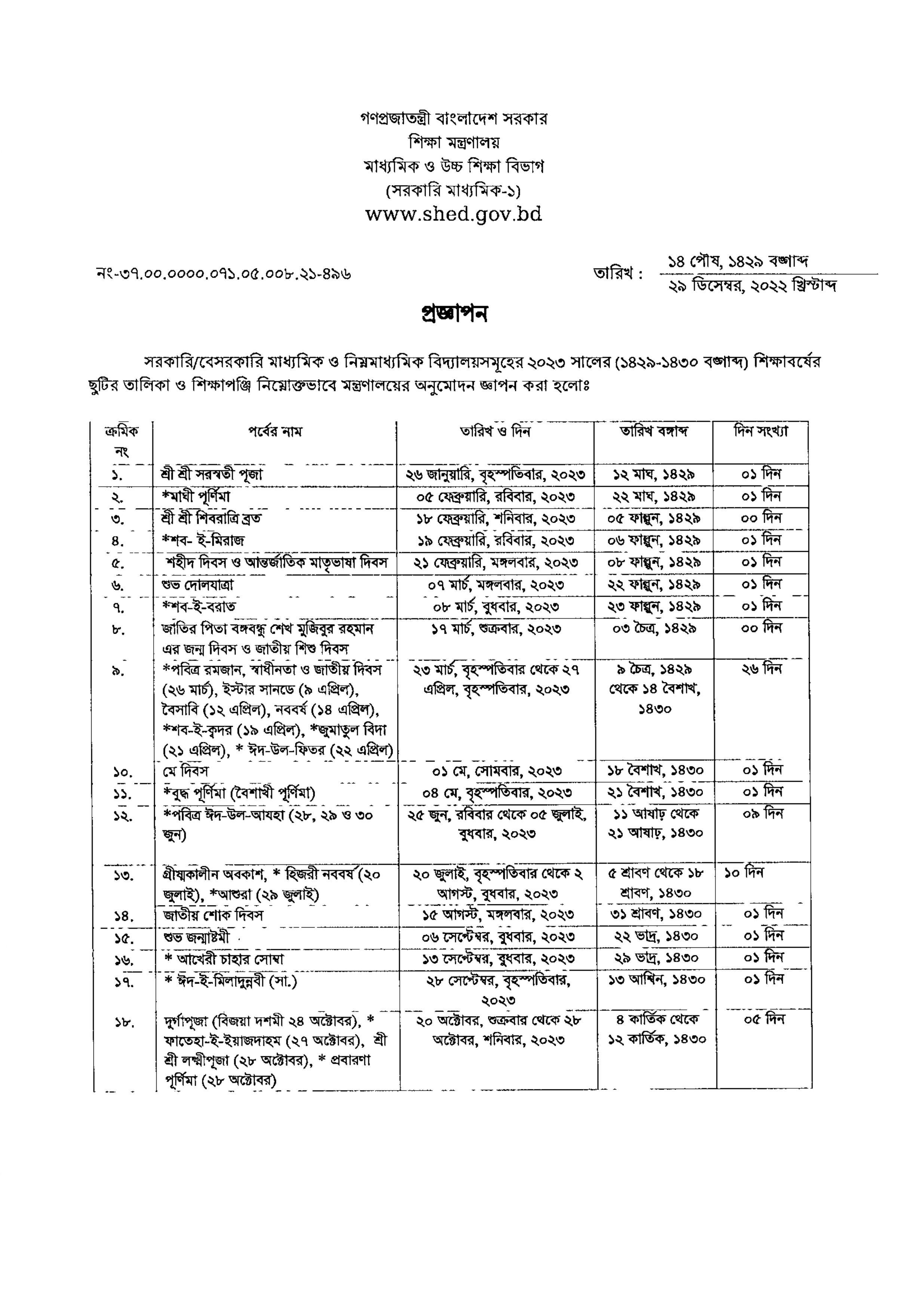 বার্ষিক ছুটির তালিকা - ২০২৩ খ্রি.